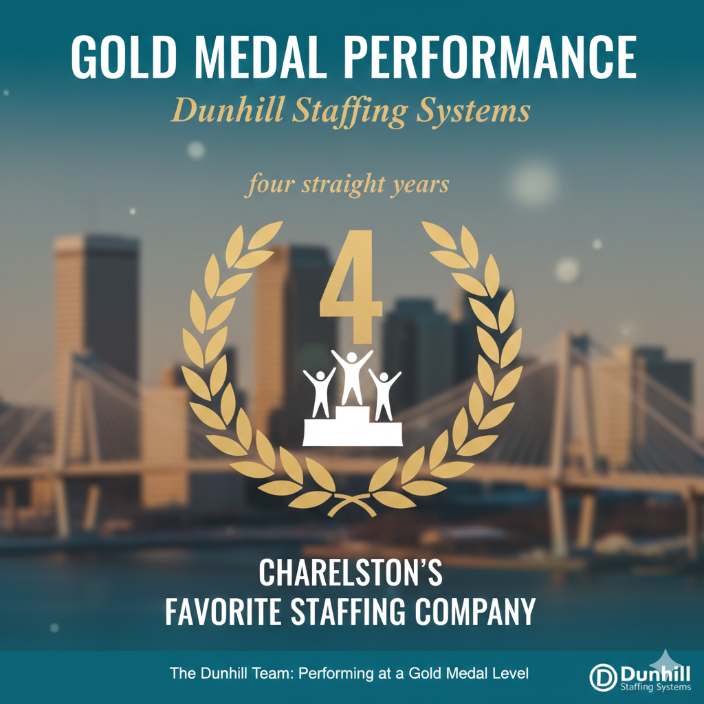 For four consecutive years, Dunhill Staffing Systems has been recognized as Charleston’s favorite staffing company. This isn’t just an award; it’s a testament to the consistent, gold-medal performance of our dedicated team and the trust our community places in us.